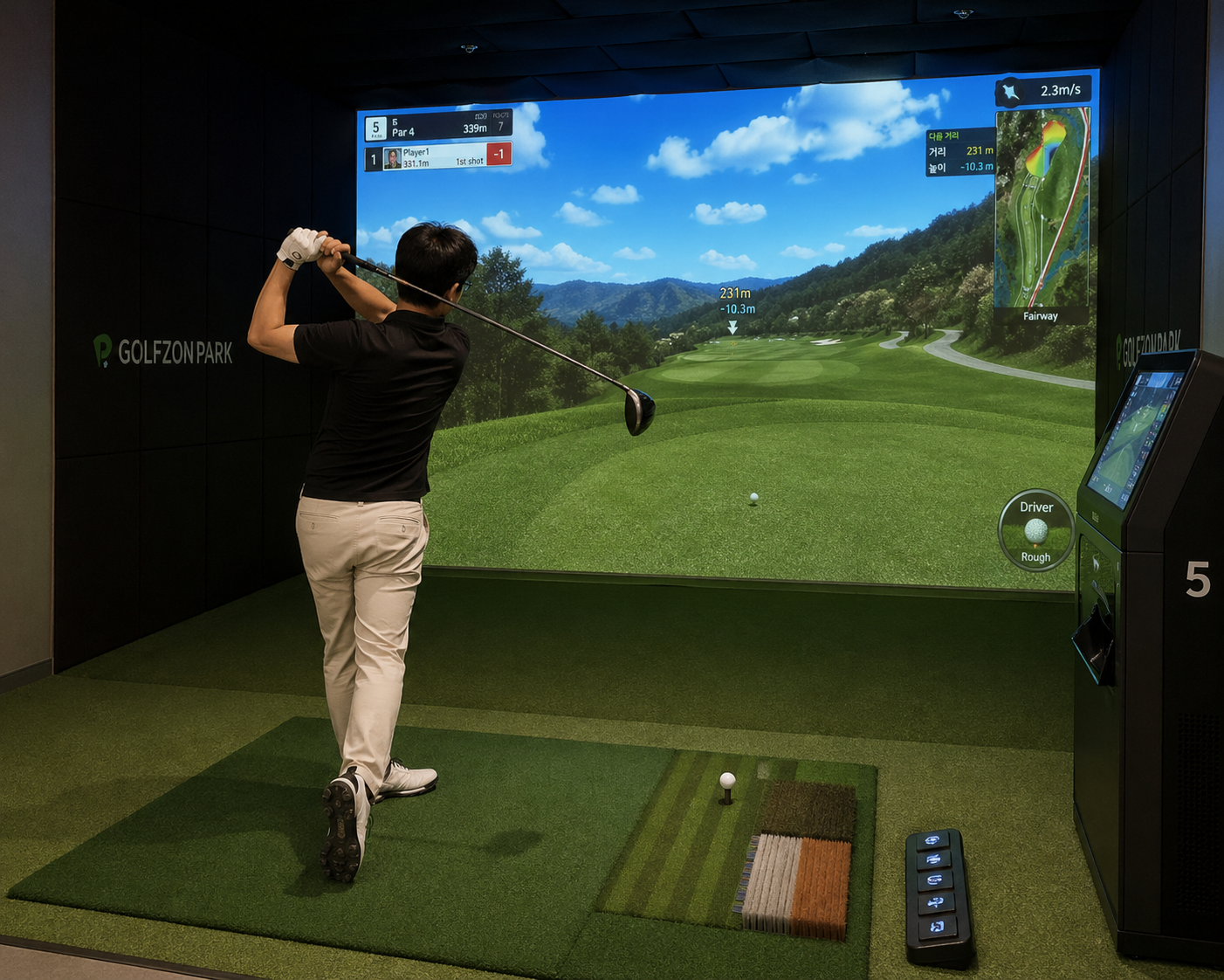 그리고 가장 큰 차이점은 스크린골프는 센서 기반으로 거리와 방향을 계산하기 때문에
